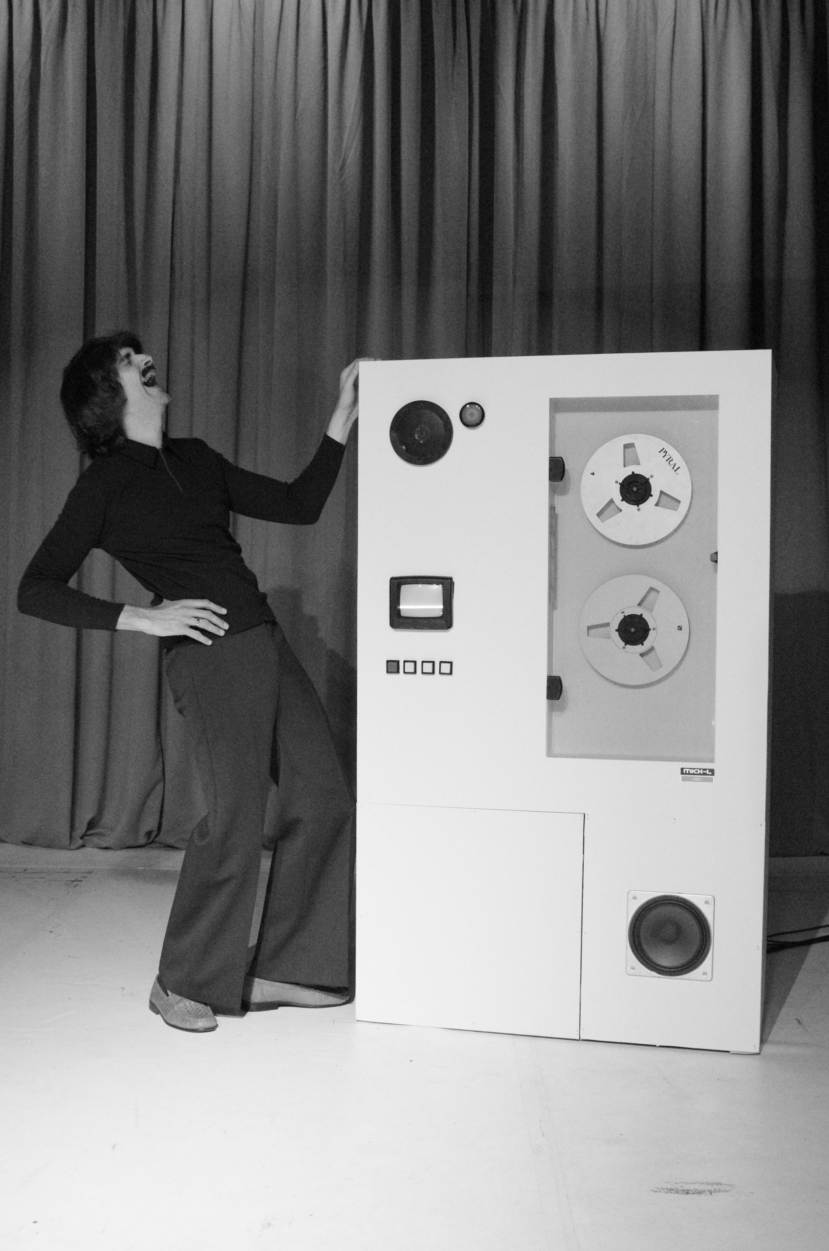 On est en 1977, la fin du monde approche. Alors que sa carrière est au point mort et que sa vie est un sketch, Patrice, un comique à l’ambition inversement proportionnelle au talent, a une idée de génie : : élaborer un disque interstellaire qui compilerait histoires potaches, gags et galéjades, une bible de l’humour. Il s’associe pour cela à son ami fidèle, « Mich-L », l’une des premières intelligences artificielles. Il en est persuadé : c’est le seul moyen de faire perdurer notre civilisation, notre esprit, à travers la galaxie. Enfermé dans son garage, entouré de perruques, de synthétiseurs et de nombreux accessoires, e nouveau Dieu du Comique s’adonne corps et âme à sa tâche. Avec loufoquerie et cocasserie, les deux artistes nous entraînent aux confins du surréalisme.